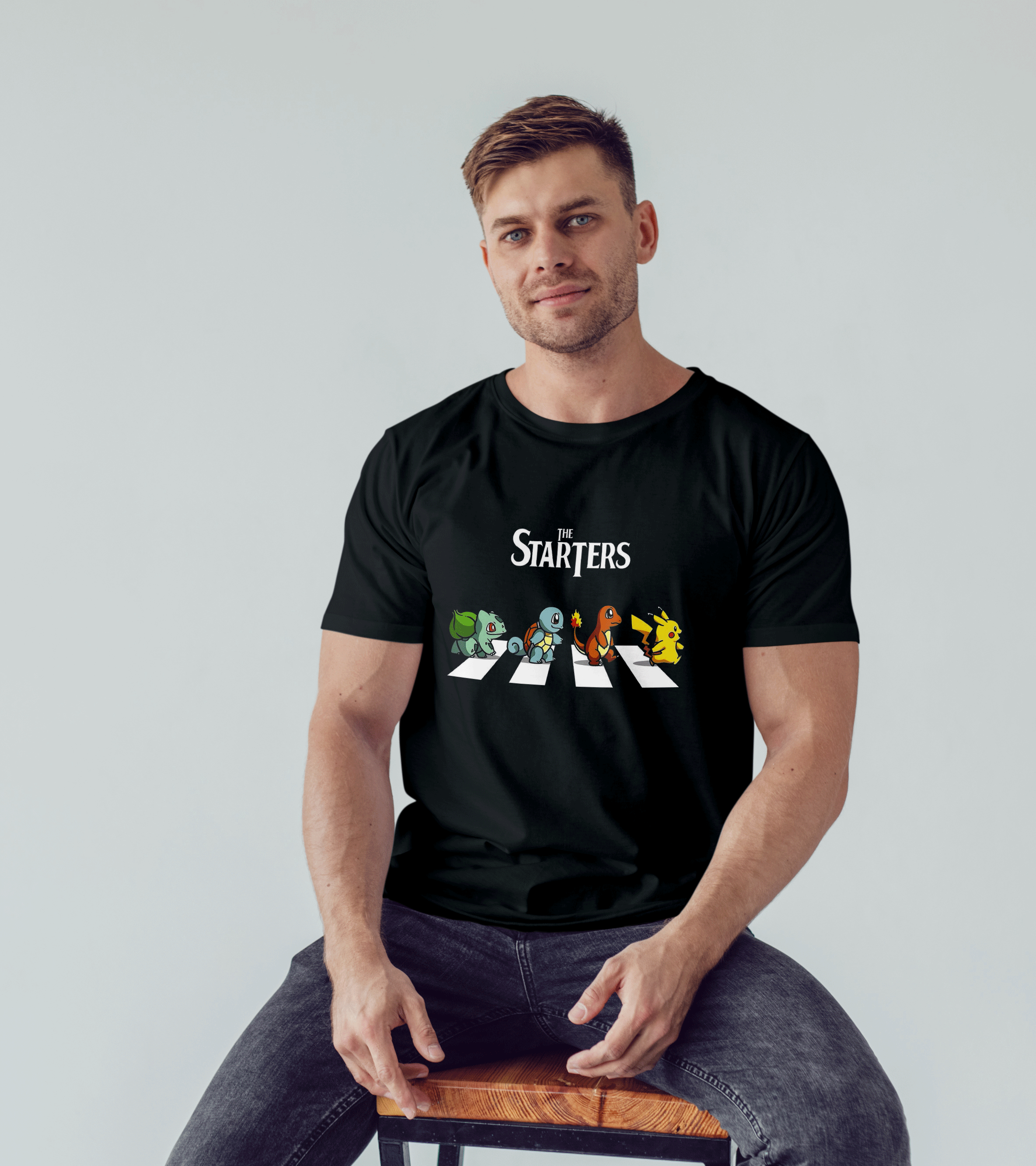 Celebrate your love for both Pokémon and pop culture with this one-of-a-kind Pokémon Starters Abbey Road T-Shirt. Featuring the beloved original starters — Bulbasaur, Squirtle, Charmander, and the iconic Pikachu — this design is a playful homage to The Beatles' legendary Abbey Road album cover.