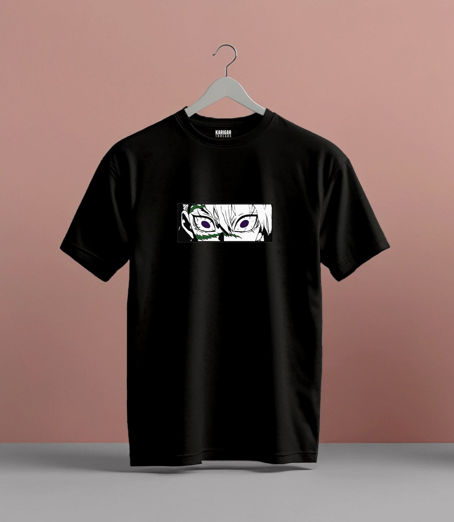 Unleash your inner warrior with our Sanemi Demon Slayer Anime T-Shirt, designed for true anime and manga fans. This premium black cotton unisex tee features a bold anime eye print on the front and a powerful warrior silhouette on the back, making it a must-have for every otaku wardrobe.